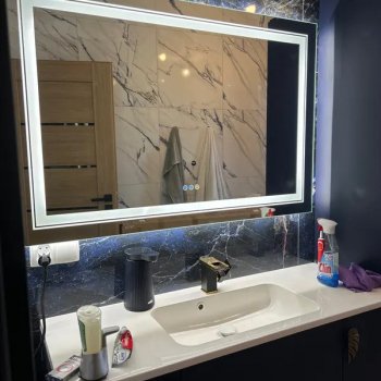 Elevate your daily routine with our LED Bathroom Mirror Large Illuminated Dimmable Vanity Mirror. Designed to bring both style and functionality to your space, this modern mirror is the perfect addition to any bathroom, salon, or makeup room. Experience flawless lighting with both front and backlit illumination, ensuring you never miss a detail while applying makeup, shaving, or grooming.
