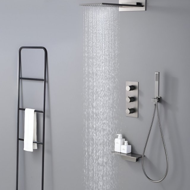 Luxury Gun Gray Digital Waterfall Shower System with Dual Control