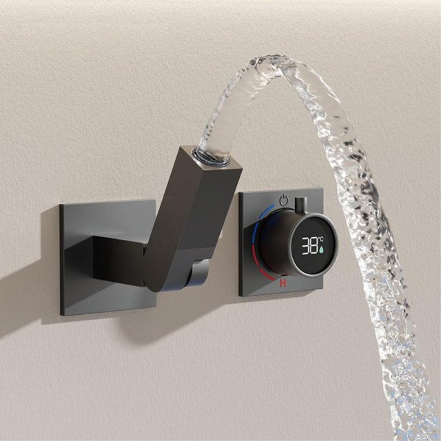 Elevate your shower experience with this stunning luxury gun gray brass shower system. Designed to combine sophistication with functionality, this shower system offers a sleek digital display and an elegant waterfall water outlet. The perfect fusion of modern aesthetics and practical features, it’s a must-have addition for any contemporary bathroom.