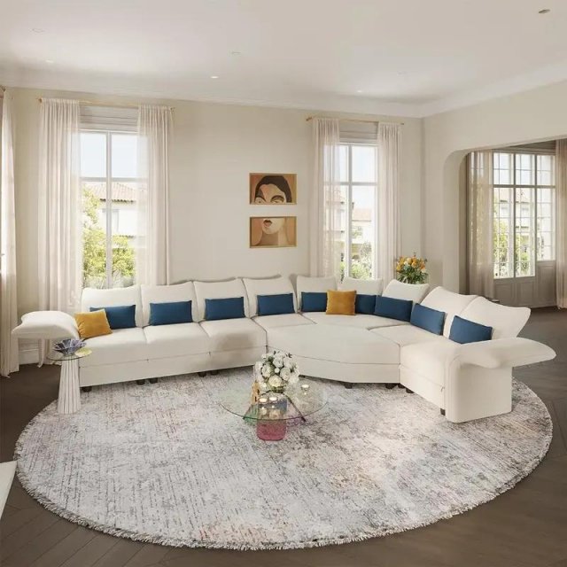 Keep your living room organized with this TV stand’s spacious storage options. It includes four sliding drawers, double glass-paneled cabinets, and adjustable shelves to accommodate gaming consoles, DVDs, books, and more. Cable management holes ensure a neat and clutter-free appearance, making this media console as practical as it is stylish.
