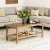 Sleek Light Wood Coffee Table with Seagrass Storage Shelf
